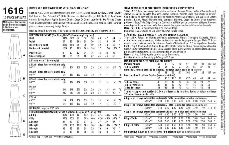 SIMP1616 Size 14 to 22 Skirts Sewing Pattern