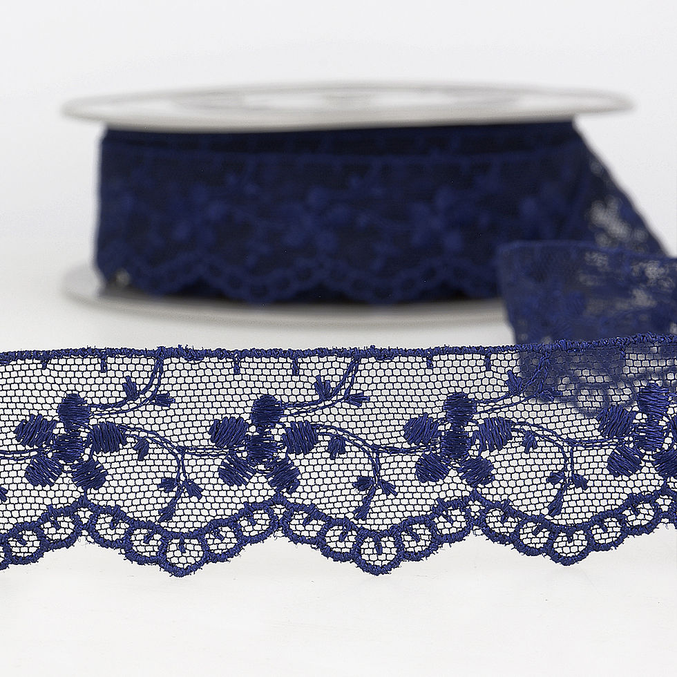 Trim: Lace: Embroidered Tulle 35mm Navy Price per Metre